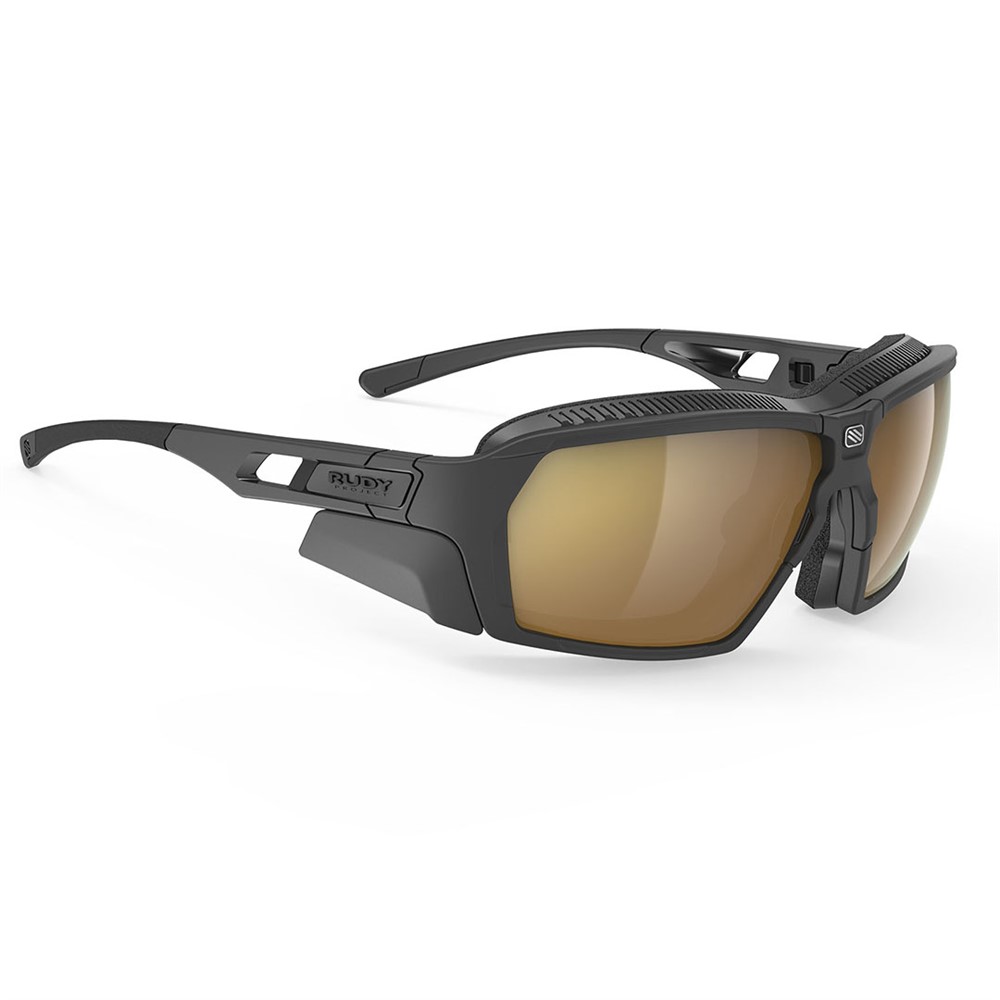 Agent Q is our most versatile protection eyewear. This full-featured technical model integrates sculpted design, modern look and cutting edge technologies to secure your eyes, to expand your field of vision while providing maximum comfort. Thanks to a smart release system, the QuickSnap Temple Lock, you can easily change the temple configuration and mount a goggle elastic strap, shide shields and removable countermask increase eye protection while the flip change lens button allows to easily replace the lenses.
